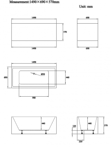 Hilton Rectangle Freestanding Bathtub 1500 Gloss White