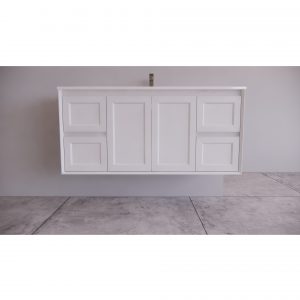 Uni Hampton Wall Hung Vanity 1200 Matt White With Ceramic Top