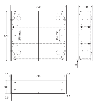 Width: 750mm x Height: 670mm x Depth: 180mm