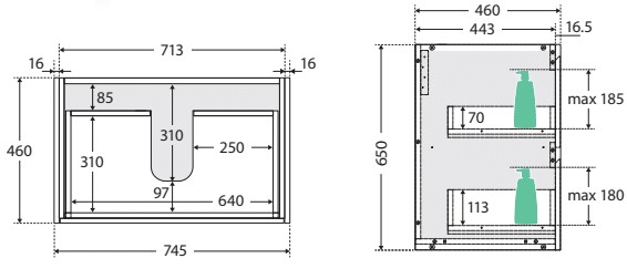 Width: 750mm x Depth: 460mm x Height: 870mm
