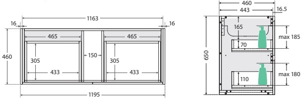 - 16 mm thick backing boards & drawer bases