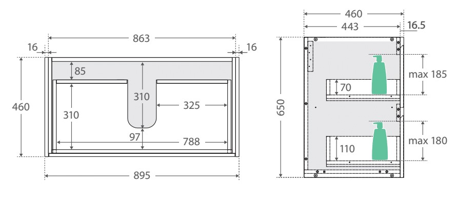 Width: 900mm x Depth: 465mm x Height: 670mm