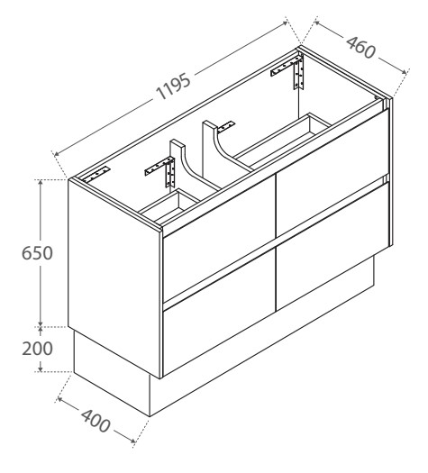 Width: 1200mm x Depth: 465mm x Height: 870mm