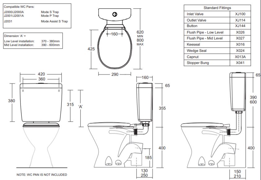· Convertible to 6/3L Dual flush for use with 6L pans