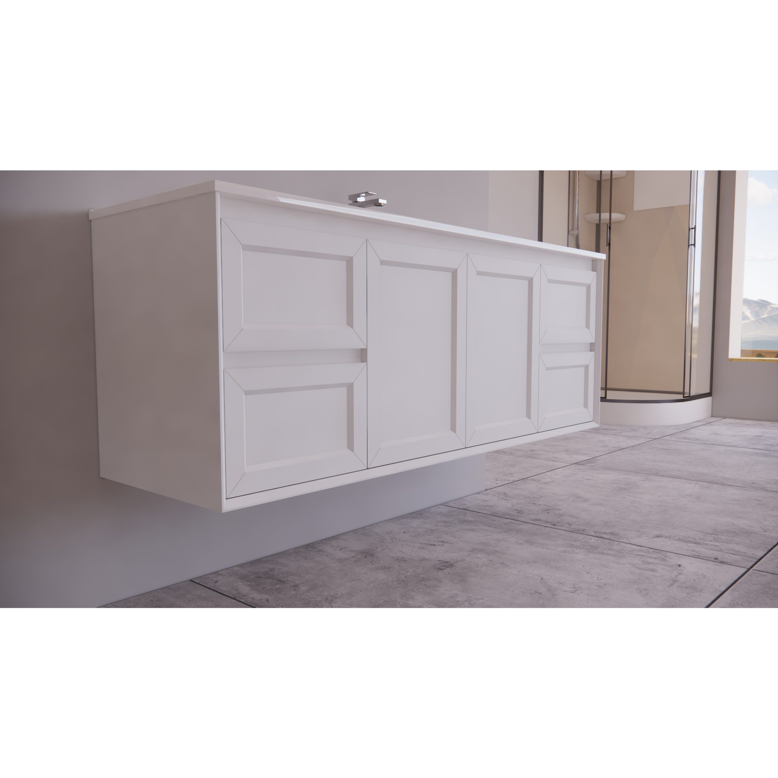 Universal Hampton cabinets feature popular modern-vintage styling with beautifully routered drawer fronts and a smooth satin finish. Wall mounted at your preferred height.